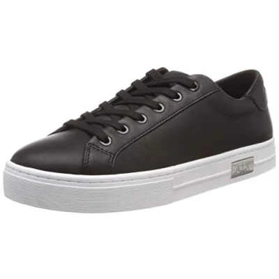 Armani Exchange Women's cow leather lace up sneaker Trainers, Black (Black + White A120), 4 UK, (37 EU)