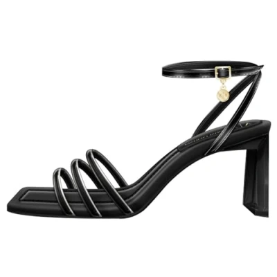 Armani Exchange Women's Dalia, Triple Band, Ankle Strap Heeled Sandal, Black, 4 UK