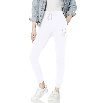 Armani Exchange Women's Drawstring Logo Studs Terry Jogger Pant Track, White (Optic White), M