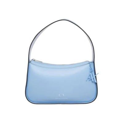 Armani Exchange Women's Elysees, Logo Chain, Zipped Shoulder Bag, Blue River, One Size