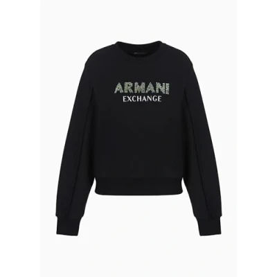 Armani Exchange Women's Rhinestone Logo Crewneck Pullover Sweatshirt, Black, L