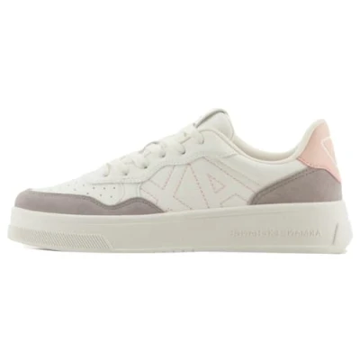 Armani Exchange Women's Seattle, Suede Details, Embroidered Logo Sneaker, Off White Taupe Rose, 4 UK
