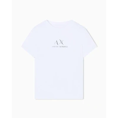 Armani Exchange Women's Short Sleeve Front Logo Print Regular Boxy Fit T Shirt, White, L, White (Optic White), L