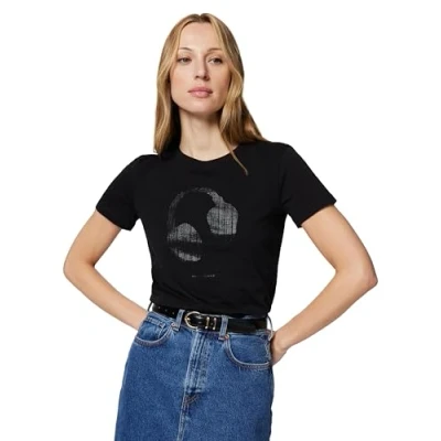 Armani Exchange Women's Short Sleeve Picture Print Regular Fit T Shirt, Black, M