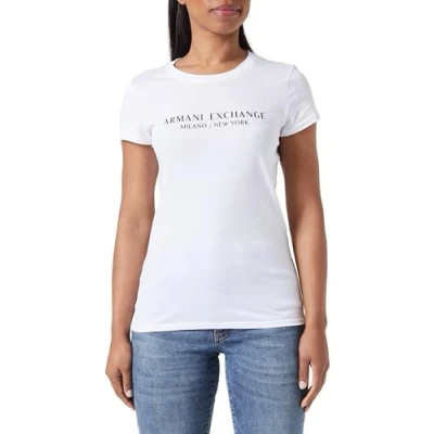 Armani Exchange Women's Slim fit Milano New York Crew Neck T Shirt, White (Optic White), Large