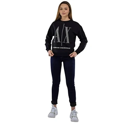 Armani Exchange Women's Studded Icon Sweatshirt, Black, S