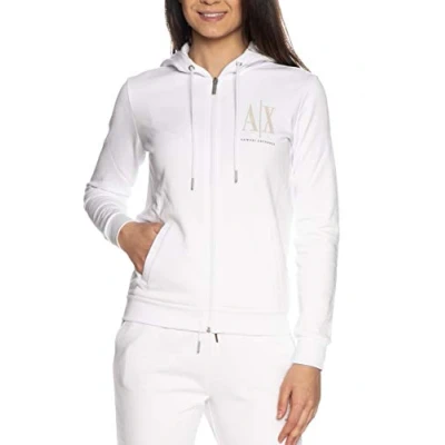 Armani Exchange Women's Studded Icon Zip Up Hooded Sweatshirt, White, XL