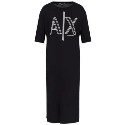 Armani Exchange Women's Sustainable, Big Logo Print, Round Neck Casual Dress, Black, M