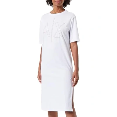 Armani Exchange Women's Sustainable, Big Logo Print, Round Neck Casual Dress, White (Optic White), S