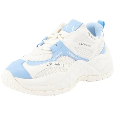 Armani Exchange Women's Vedder, Microsuede Clean Essential Look Sneaker, Off White Blue, 3.5 UK