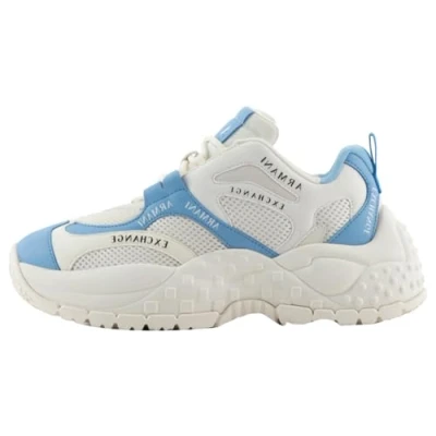 Armani Exchange Women's Vedder, Microsuede Clean Essential Look Sneaker, Off White Blue, 5 UK