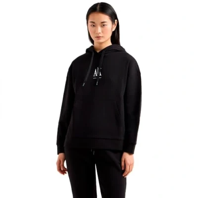 Armani Exchange Women's, Icon project, embroidered logo, Hooded Sweatshirt, Black, XS