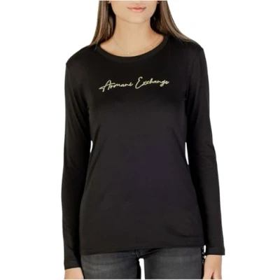 Armani Exchange Women's Long Sleeve Front Big Signed Logo T Shirt, Black/Gold, XS