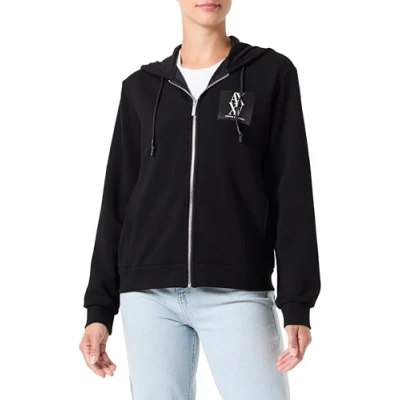 Armani Exchange Women's Stretch Scuba Full Zip Hoodie with Stacked Ax Logo Hooded Sweatshirt, Black, XL