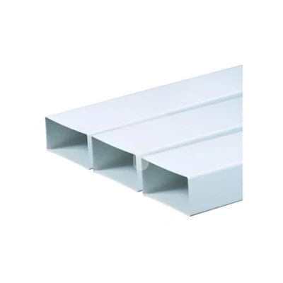 General description Flat Air Duct PVC 55/10 is a rectangular, unflexible air duct designed for efficient air distribution in various applications. Technical specifications Colour: white Material: PVC Outer width: 110 mm Outer height: 55 mm Length: 1 m
