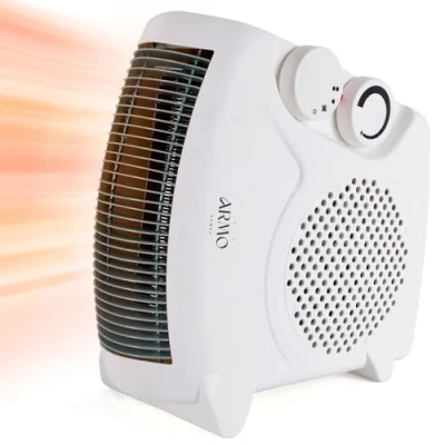 Armo 2KW Fan Heater Flatbed With 2 Settings And Cool Air Function Adjustable Thermostat Portable Electric Heating (White)