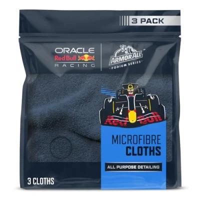 MICROFIBRE DETAILING CLOTHS: Three Armor All Podium Series microfibre cleaning cloths designed for safe, effective car cleaning SAFE ON PAINT, GLASS, TRIM: Extra-soft, non-abrasive short-pile microfibre glides smoothly to help reduce scratching, swirling, and streaks on paint, glass, and interior surfaces 350 GSM PRO WEIGHT: Professional-grade 350 GSM microfibre cloths deliver optimal softness, absorbency and control for drying, buffing and polishing LIFTS AND LOCKS DEBRIS: Dense fibres trap, lift, and lock away dust, dirt, and residue to keep contaminants off surfaces during routine car care STREAK-FREE FINISH: Leaves paint, glass, screens, and trim clear and lint-free; ideal microfibre drying cloths for a consistent, pro-level result EASY TO USE AND REUSE: Machine washable and durable for repeat performance; wash colours separately and avoid fabric softener for best results DEVELOPED WITH ORACLE RED BULL RACING: Built to meet elite standards; pair with your favourite car care products for dependable performance at home