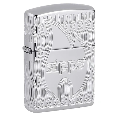 Armor Case Polished Chrome Zippo Flame 60006834 8 Sided Deep Engraved Gift Box
