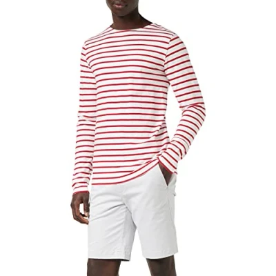 Armor Lux Men's Marinière plozévet Homme Long Sleeve Top, Multicolour (320 Blanc/Braise 320), Medium