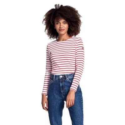 Armor Lux Women's Marinière Lesconil T Shirt, Blanco (White/Braise 320), 12 (M)