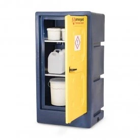 Lockable cabinets that keep your chemicals safe and accessible Bunded base with capacity of up to 125L, depending on model Lockable doors to prevent unauthorised access Made from UV protected and chemical resistant plastic
