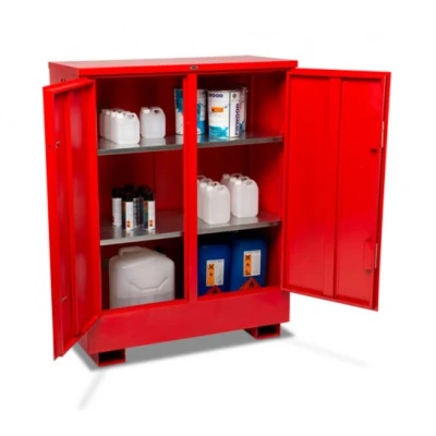 General description The Armorgard FlamStor™ Hazard Cabinet is designed for the safe storage of harmful chemicals and flammables. It serves as an upright alternative to the FlamBank, featuring fully adjustable shelving for versatile storage options. Technical specifications External Dimensions: 500 x 530 x 980mm Internal Dimensions: 470 x 470 x 900mm Weight: 50kg Other information Built to 30-minute fire resistance Fully welded and tested sump base to prevent leakage High and low-level ventilation Heavy-duty 5-lever deadlocks with serial numbers for replacement keys Forklift skids on all sizes