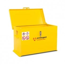 General description This Armorgard TransBank™ Chemical Transit Box is specifically designed for the safe storage and transportation of smaller quantities of chemicals. It features a robust construction that ensures compliance with regulations and provides a fire-resistant solution. Technical specifications Sump Capacity: 70 liters External Dimensions: 880 x 485 x 540 mm Internal Dimensions: 790 x 415 x 510 mm Weight: 28 kg Other information Fully complies with all regulations and built to 30-minute fire resistance Fitted with flame arrester gauze Pre-drilled holes for bolting down to secure the unit Finished in bright yellow with relevant hazard warning signs