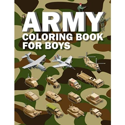 Army Coloring Book for Boys: Kids Ages 4 8, 8 12 with Military Heavy Vehicles, Armored Tanks, Guns, Soldiers, Robots, Planes and Equipment Soldiers