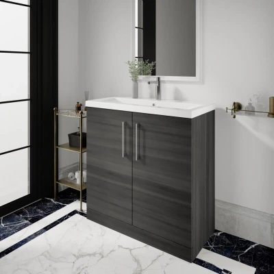 Arno Anthracite Woodgrain 800mm 2 Door Vanity Unit and Curved Ceramic Basin ARN505G Nuie