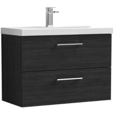 Arno Charcoal Black Woodgrain 800mm Wall Hung 2 Drawer Vanity Unit and Thin Edge Ceramic Basin ARN626D Nuie