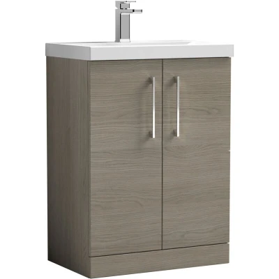 Arno Floor Standing 2 Door Vanity Unit with Basin 1 600mm Wide Solace Oak Woodgrain Nuie