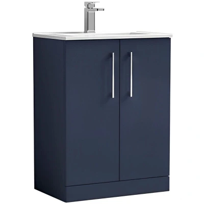 Arno Floor Standing 2 Door Vanity Unit with Basin 600mm Wide Midnight Blue Nuie