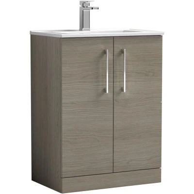 Arno Floor Standing 2 Door Vanity Unit with Basin 600mm Wide Solace Oak Woodgrain Nuie