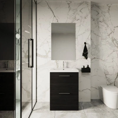 Arno Floor Standing 2 Drawer Vanity Unit with Basin 600mm Wide Black Woodgrain Nuie