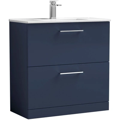 Arno Floor Standing 2 Drawer Vanity Unit with Basin 800mm Wide Midnight Blue Nuie