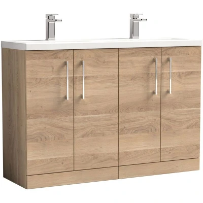 Arno Floor Standing 4 Door Vanity Unit with Double Ceramic Basin 1200mm Wide Bleached Oak Nuie