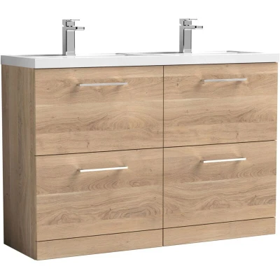 Arno Floor Standing 4 Drawer Vanity Unit with Double Polymarble Basin 1200mm Wide Bleached Oak Nuie