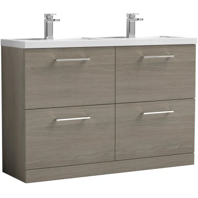 Arno Floor Standing 4 Drawer Vanity Unit with Double Polymarble Basin 1200mm Wide Solace Oak Nuie
