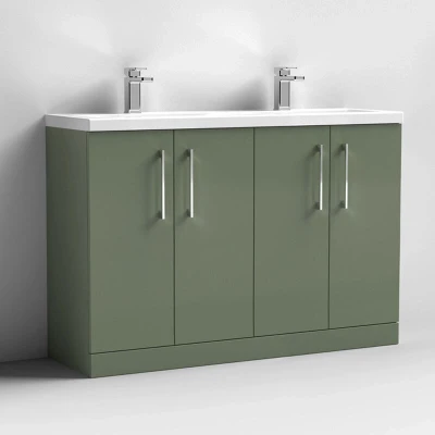 Arno Satin Green 1200mm 4 Door Vanity Unit with Double Ceramic Basins ARN803F Nuie
