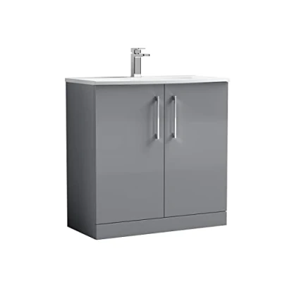 Arno Satin Grey 800mm 2 Door Vanity Unit and Curved Ceramic Basin ARN2205G Nuie