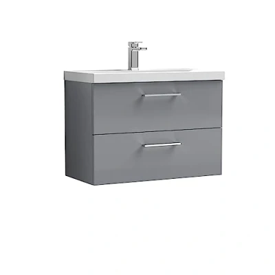 Arno Satin Grey 800mm Wall Hung 2 Drawer Vanity Unit and Mid Edge Ceramic Basin ARN2226A Nuie