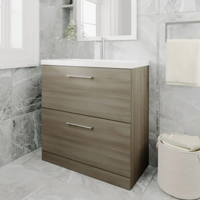 Arno Solace Oak Woodgrain 800mm 2 Drawer Vanity Unit and Curved Ceramic Basin ARN2535G Nuie