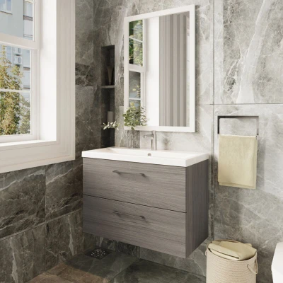 Arno Solace Oak Woodgrain 800mm Wall Hung 2 Drawer Vanity Unit and Mid Edge Ceramic Basin ARN2526D Nuie
