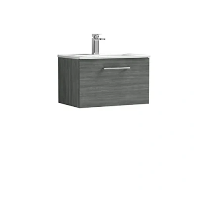 Arno Wall Hung 1 Drawer Vanity Unit with Basin 2 600mm Wide Anthracite Woodgrain Nuie