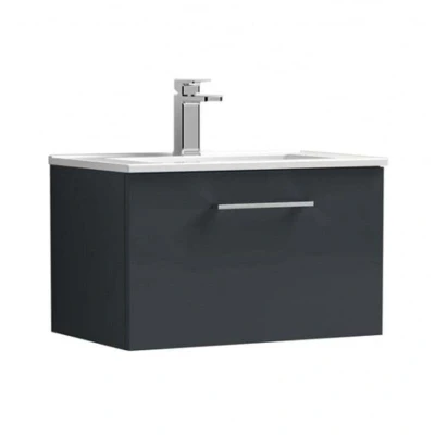 Arno Wall Hung 1 Drawer Vanity Unit with Basin 2 600mm Wide Satin Anthracite Nuie
