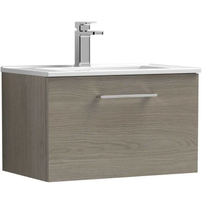 Arno Wall Hung 1 Drawer Vanity Unit with Basin 2 600mm Wide Solace Oak Woodgrain Nuie