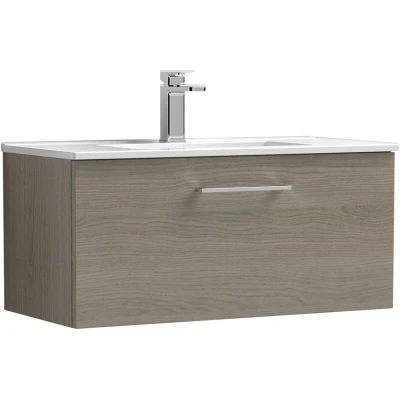 Arno Wall Hung 1 Drawer Vanity Unit with Basin 2 800mm Wide Solace Oak Woodgrain Nuie