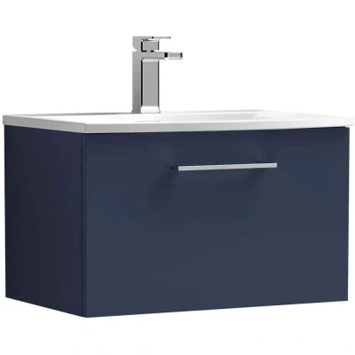 Arno Wall Hung 1 Drawer Vanity Unit with Basin 4 600mm Wide Midnight Blue Nuie