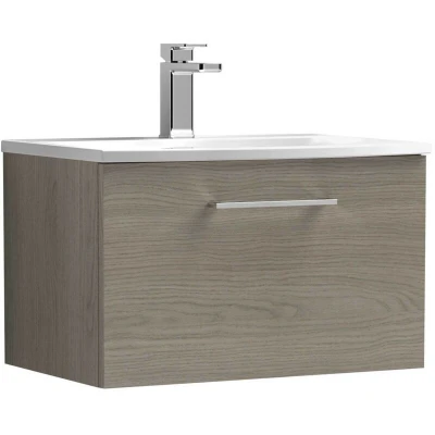 Arno Wall Hung 1 Drawer Vanity Unit with Basin 4 600mm Wide Solace Oak Woodgrain Nuie