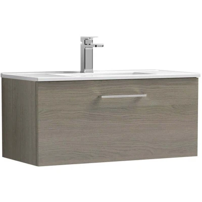 Arno Wall Hung 1 Drawer Vanity Unit with Basin 4 800mm Wide Solace Oak Woodgrain Nuie